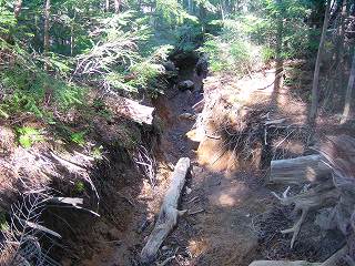 (雨に削られた登山道)