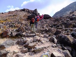 ____(階段状の登山道)_____________(傾斜の緩い登山道)