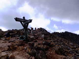 峰の茶屋避難小屋から20分登った所で ロープウェー山頂駅からの登山道と合わせると、