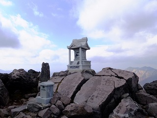 鳥居の奥が茶臼岳の山頂で、山頂には 那須岳神社と書かれた石の祠が祀られています。