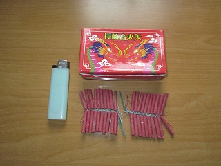 _______(徒渉場所)___________(私が持っていった爆竹とライター)