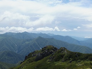 ___(北戸蔦別岳と戸蔦別岳)_______________(尾根の岩山)