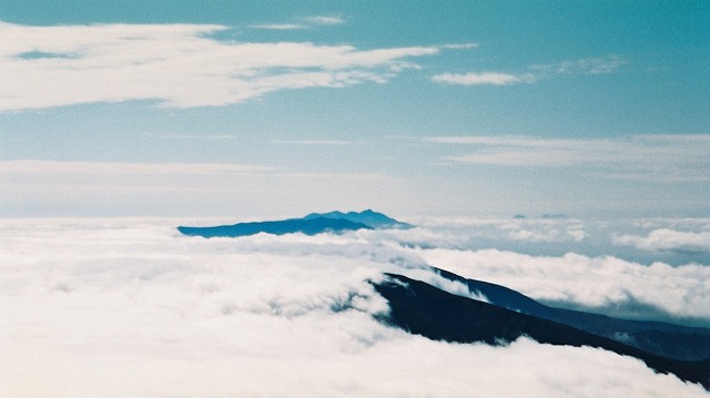 _____(海別岳と斜里岳、雲海の右奥は 雄阿寒と雌阿寒岳か)