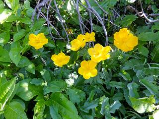 雪渓の上の登山道の両脇には シナノキンバイとナナカマドが沢山咲いていました。
