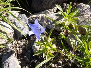___(羅臼平から見た山頂)_________(羅臼平に咲いていたイワギキョウ)