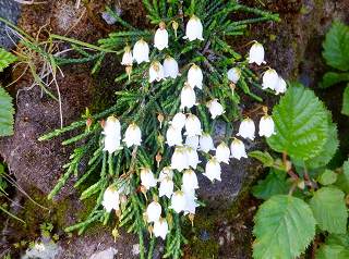_(山頂付近の 巨岩の中の登山道)________(エゾノツガザクラとチングルマ)