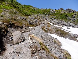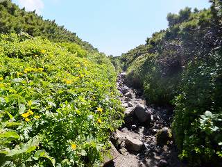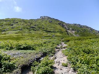羅臼平から上は、最初は 多少ガレ気味で傾斜の緩い登山道です。