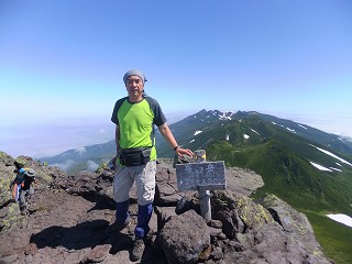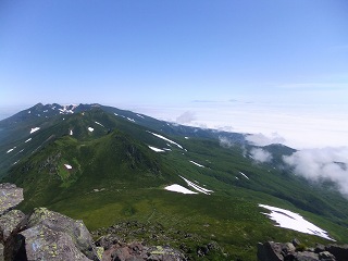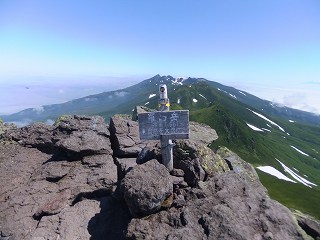 ___(山頂から見た硫黄岳)___________(右奥に見えた国後島の山)