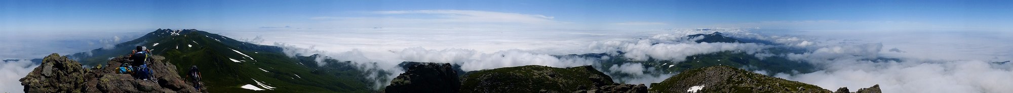 _(オホーツク展望台から見た雲海)____ (下山時に 展望台の上から見た知床の山)