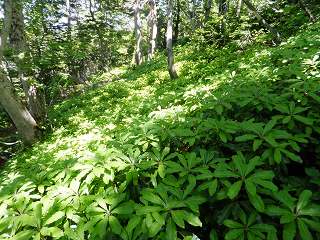 オホーツク展望台から20分登った所でダケカンバ林に変わると 平らな所が多くなって、