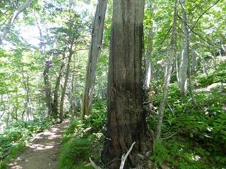 この辺りは鹿の食害がひどいのか、イチイらしき価値のありそうな木の幹には 食害防止の