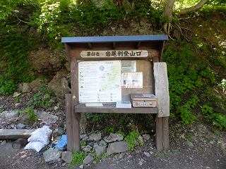 __(登山口、右が公衆トイレ)___________(登山者カードポスト)