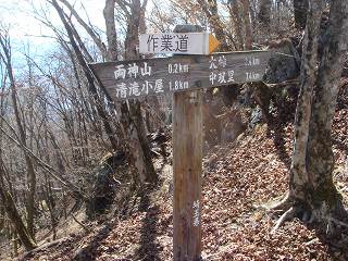 中双里の道標の上で 日向大谷からの登山道と合わせて、そこから北に行って 狭い道の