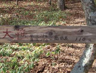 (高低差110Mと書かれた 大笹の標識)__________(大笹の登山道)