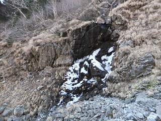 藪沢では 日陰の斜面から水が染み出した所にツララの塊ができていました。