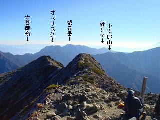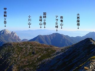 重なる悪沢岳の右奥に 赤石岳と聖岳が見えました。
