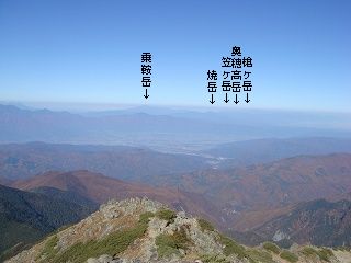 北アルプスは、乗鞍岳から離れた所に 焼岳・笠ヶ岳・奥穂高岳・常念岳が見えましたが