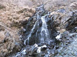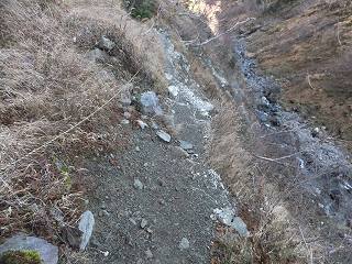 _____(ザレた登山道)_______________(藪沢にある滝)