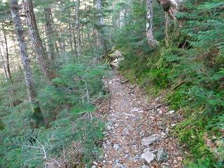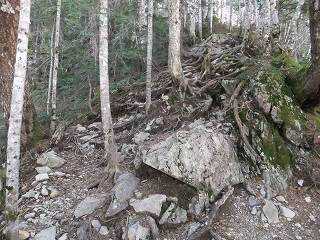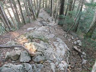 ___(傾斜のきつい登山道)___________(木の根と岩が出た登山道)