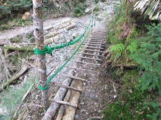 ____(ロープがある岩場)______________(痩せた登山道)
