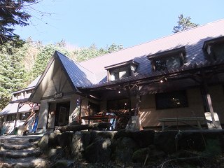 沢から高低差の少ない登山道を10分歩いて ようやく大平山荘に着きました。