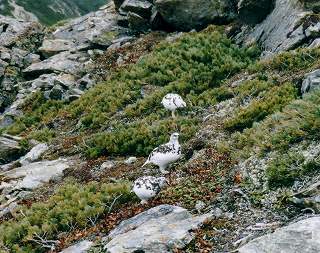 下山中に見た6羽のライチョウは 冬支度に入って白い斑模様になっていて、北沢峠の