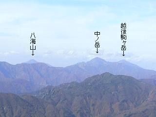 越後駒ヶ岳・平ヶ岳・ 会津駒ヶ岳・ 燧ヶ岳・ 男体山・ 奥白根山・ 皇海山が見えました。