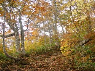 標高が上がって登山道の周りにブナが多くなると 紅葉が色付いてきました。