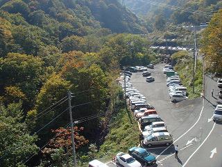 (後ろの建物がロープウェー乗り場の通路)_____(外の駐車場も満車でした)