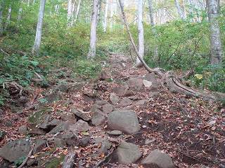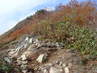 (色付いてきた登山道)