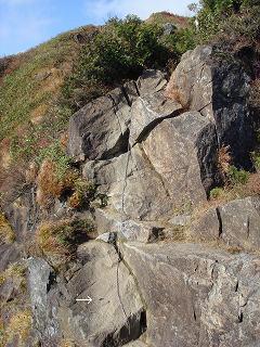 ___(傾斜のきついクサリ場)_________(クサリの左下にある矢印が 鋲)
