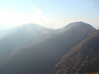 _____(山腹の紅葉)______________(振り返って見た山並み)