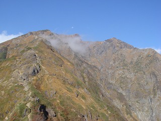 尾根が見えました。(2日酔いの体で良く登って来たものです)