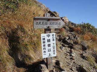 _____(分岐にある道標)__________(初心者・下山不向きの注意書き)