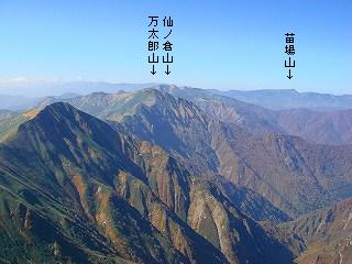 西側に 万太郎山・ 仙ノ倉山・ 苗場山が見えました。