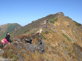紅葉の時期と好天が重なったので 登山者が途切れることなくやって来て、私が山頂を後に