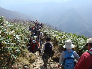 相変わらず 登山者が絶えることなく登って来て、登山道が狭くなった所では渋滞が出来て