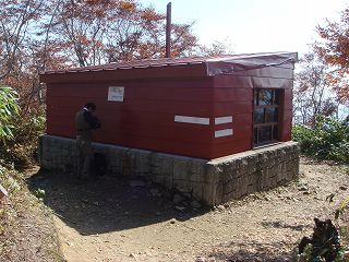 肩ノ小屋の東半分は 避難小屋を兼ねた休憩所になっていて、トイレが100円のチップ制で