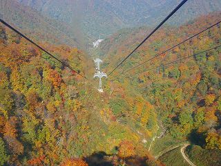 __(ロープウェーから見た紅葉)__________(行き会うロープウェー)