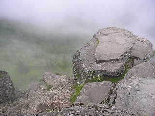 (霧の合間に見えた 王ヶ鼻からの眺め)