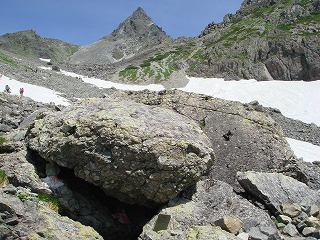 槍ヶ岳山荘から1時間下りた所に、播隆上人が4回目に登った時に 53日間篭って念仏を