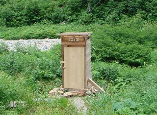 槍沢キャンプ場には 水場とベニヤ板作りのトイレがありました。