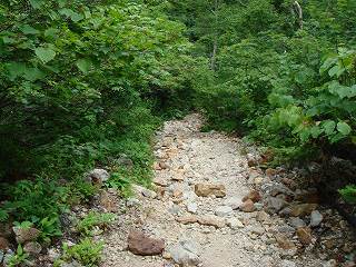 _____(雪渓の最下部)___________(渓谷から 左の潅木帯に入る)