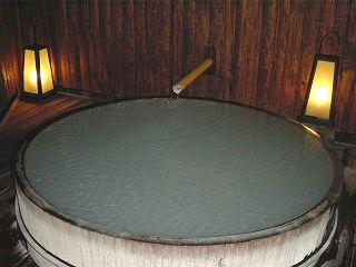 その名の通りの大きな露天風呂で、強酸性の白濁の源泉が大量に かけ流しになっている