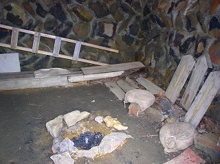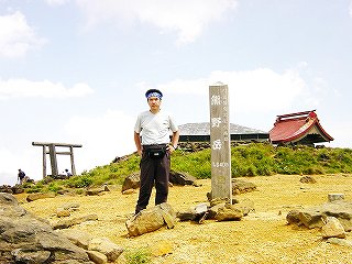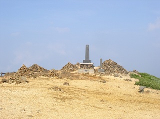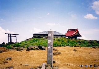 ____(熊野岳の標柱と神社)______________(2001年の山頂)