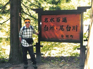 ____(名水百選の看板)____________(尾白川渓谷の滝)