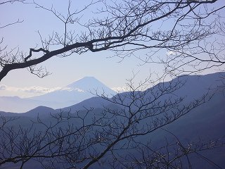 この時期は落葉していて雑木林の中の登山道から富士山が見えました。