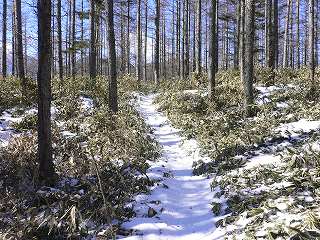 やがてブナ林からカラマツ林に変わると林床に背の低い笹が密生するようになって、この
