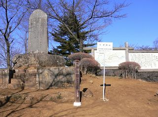 立っていて、標柱の後ろに乃木大将の漢詩が書かれた石碑が建っています。