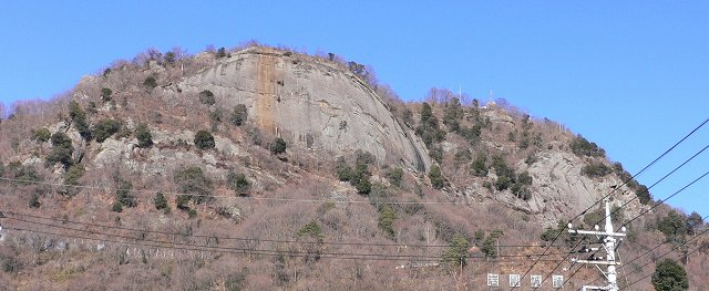 山梨百名山の標柱は 山頂ではなく岩殿山のシンボルである鏡岩の上にある公園に